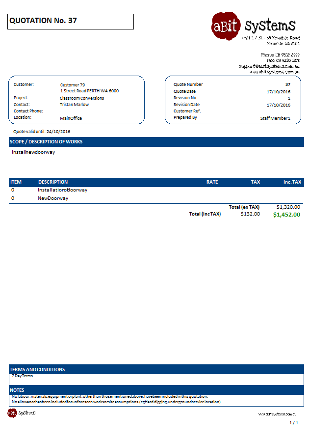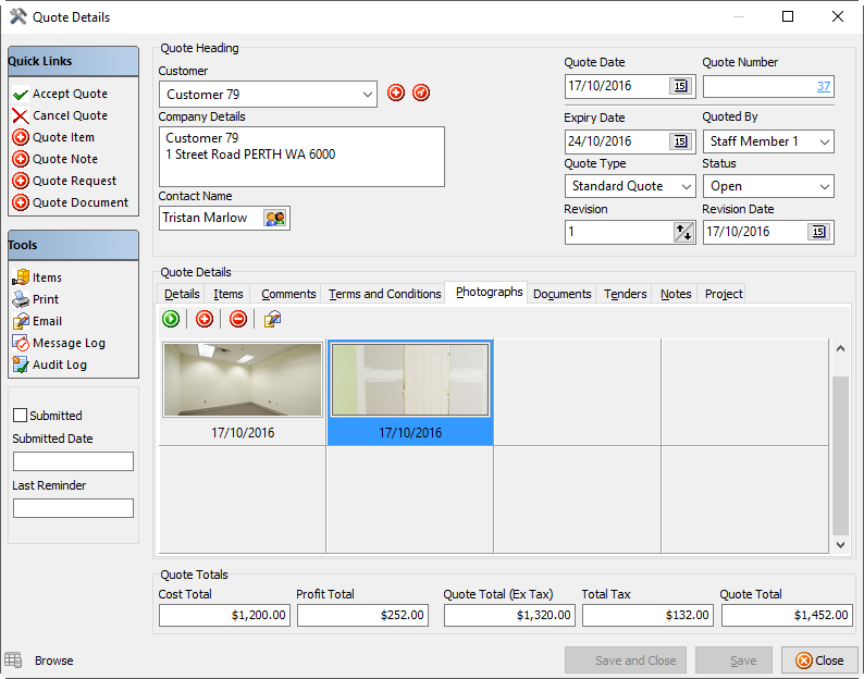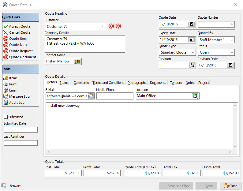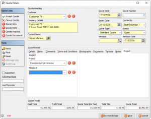 Quote items can allow calculation to be stored behind what the customer sees. Keep your quote information simple for the customer but provide a work break down internally.