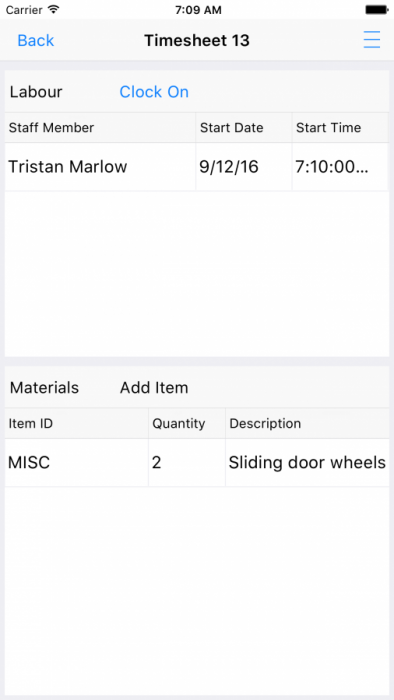 PJMS Mobile allows staff to view task information, clock on and off, and capture customer signature.